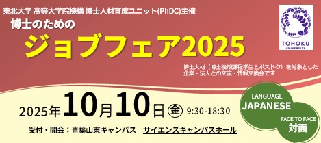 10/10(金) に開催する、東北大学イベント「博士のためのジョブフェア2025」に参加します。