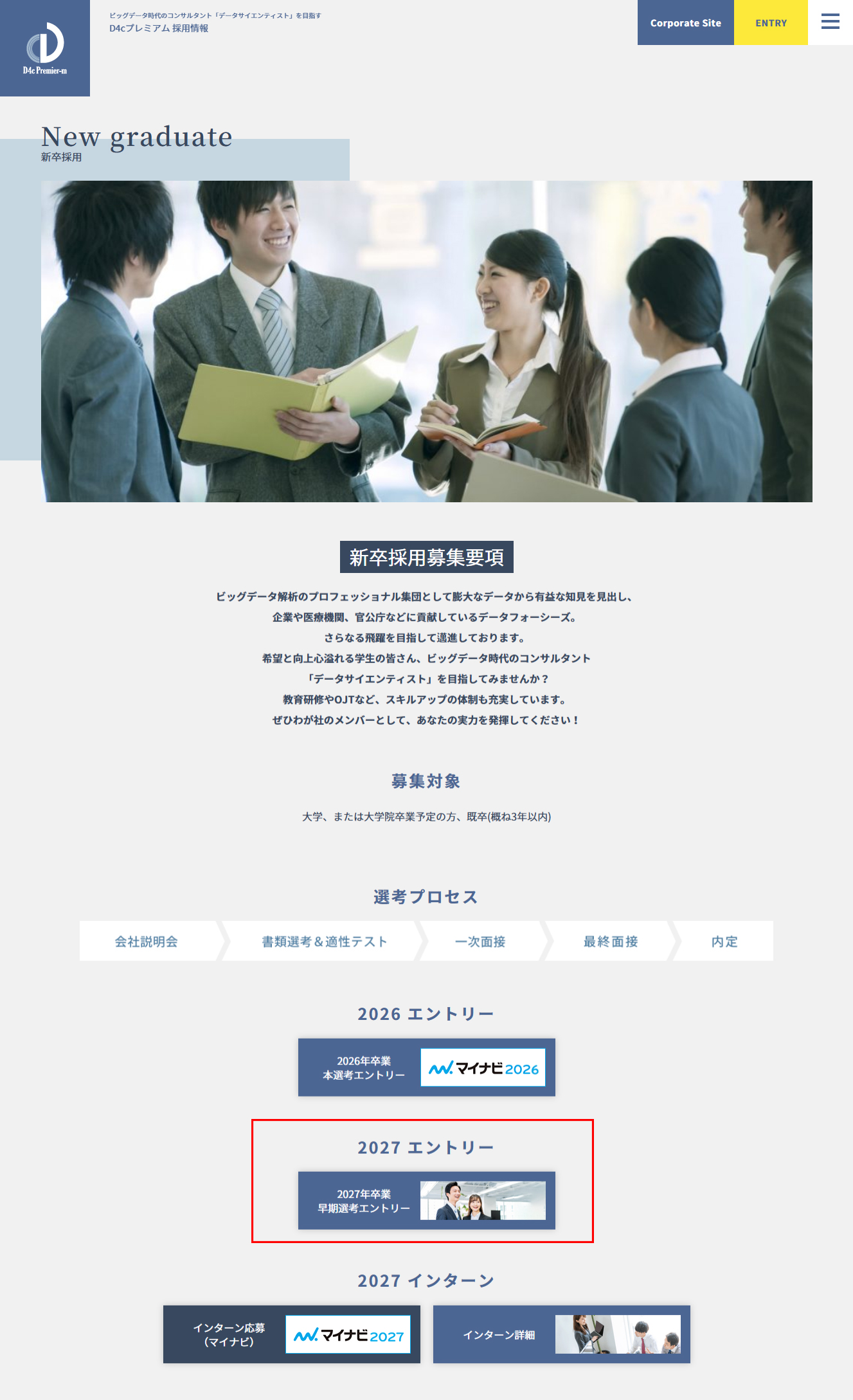 2027年入社希望の方向けに、早期選考のエントリーを受付しております。